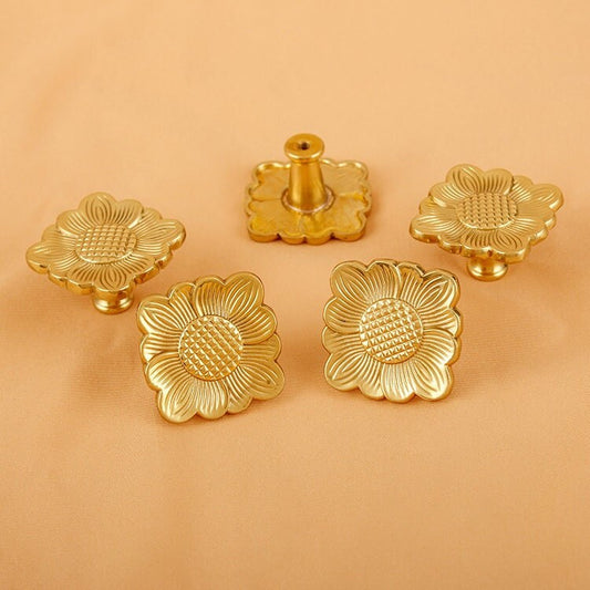Clover Brass Cabinet Knobs, Flower Dresser Decor