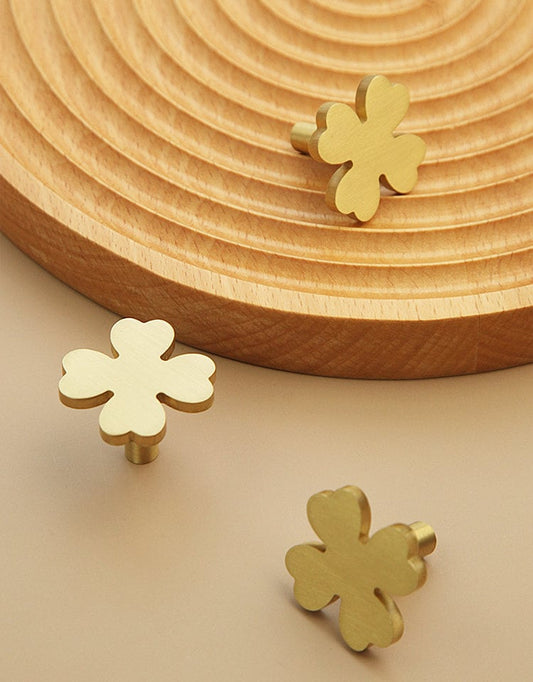 Flower Dresser handle Decor, Clover Brass Cabinet Knobs