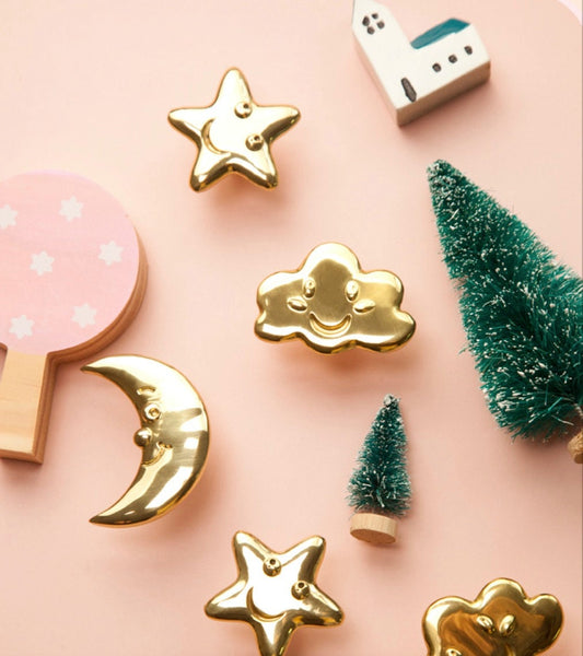 Brass moon star cloud Knobs, nursery room knobs