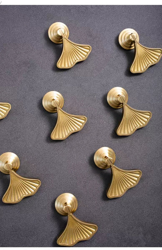 2PCS Solid Brass Ginkgo Knobs